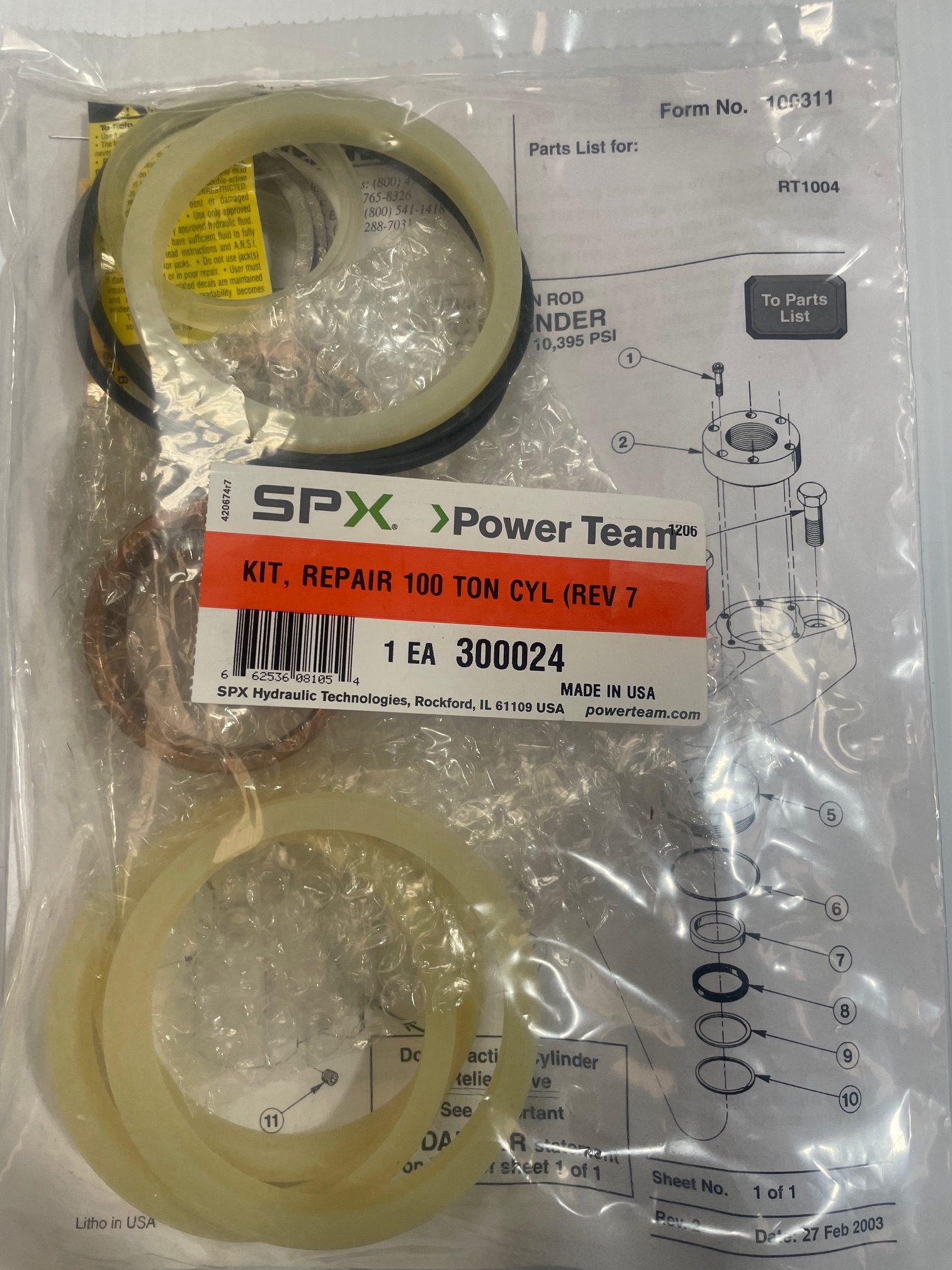 Part #300024 – Kit, Repair for 100 Ton Cylinder